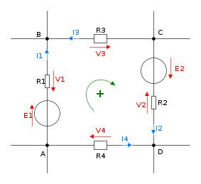 E1 − V1 + V3 + E2 − V2 + V4 = 0