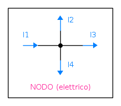 E nunziato (scusate non ho resistito!): "In un nodo la somma algebrica delle correnti è nulla, considerando quelle entranti con un segno e quelle uscenti con il segno opposto." Tale Legge è anche conosciuta come Legge di Kirchoff delle correnti "LKC" o, in inglese Kirchhoff's current law "KCL"