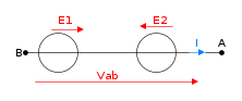 MM. Ben hai elucubrato. Ed ora ho a farti notare che se tu fossi andato da A verso B e poi novamente verso A avresti ottenuto E2 − E1 + Vab = 0 ottenendo in fine lo istesso risultato di prima per la Vab, dimostrando in cotal maniera che il tutto è indipendende dallo verso con cui si percorre la maglia. Rimane ovvio che lo generatore fittizio, una volta calcolatane le tensione torna nell'oblio da cui era giunto, per lo cui si avrà lo ramo originario ma, codesta volta, con lo valore della tensione fra li due punti, A e B, conosciuto.