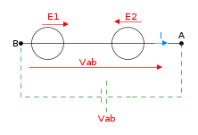 In talo caso andando da B verso A e poi ritornando a B l'equazione che s'ha da scrivere è: E1 − E2 − Vab = 0 ovverosia, essendo la Vab quella incognita si dovrebbe ottenere: Vab = E1 − E2