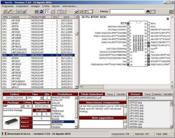 Sul lato destro ci sono i campi per selezionare il PDF del datasheet nella cartella Datasheet e l'immagine ritagliata a piacere contenuta nella cartella Pic.