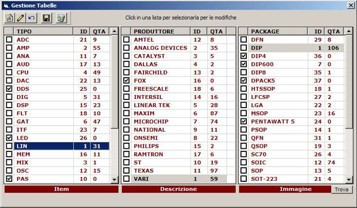 Le informazioni sui produttori, la categoria del componente e sui contenitori sono descritte rispettivamente nei file Produttori.dat, Tipi.dat e Packages.dat.
