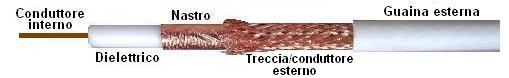 - dielettrico realizzato in materiale isolante rigido (in genere polietilene espanso) che garantisce un rapporto costante tra il diametro del conduttore interno e quello esterno in modo da garantire una impedenza costante per tutta la lunghezza del cavo;