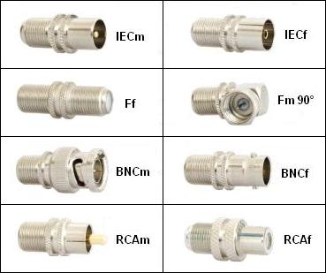 I connettori sebbene molti componenti siano ancora disponibili con connessioni a morsetto (assolutamente sconsigliabili nella ricezione digitale) vedi figura 8, l’impiego dei connettori risulta di grande importanza ai fini di un corretto collegamento del cavo con i vari componenti dell’impianto. Il tipo di connettore maggiormente impiegato è il tipo “F” disponibile sul mercato in due versioni: a vite vedi figura 9, è molto semplice da montare, economico ed affidabile; a compressione (crimpare), vedi figura 10 è molto più affidabile e tecnicamente molto più valido, per il montaggio è necessario però uno specifico attrezzo; in figura 11 sono visibili i principali tipi di adattatori di questo tipo di connettore.