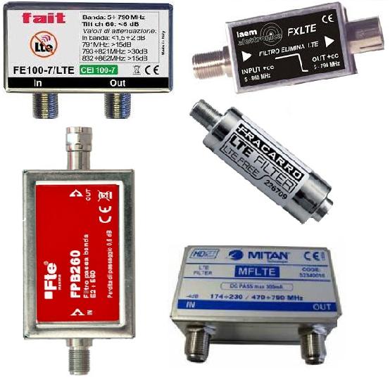 I filtri sono componenti che possono essere utilizzati per far passare o bloccare una singola frequenza oppure intere bande; con l’introduzione del nuovo standard LTE (Long Term Evolution) per le reti dei dispositivi mobili di nuova generazione 4G, le frequenze da 791 a 862 MHz precedentemente assegnate ai canali UHF dal 61 al 69 sono state riservate per le trasmissioni LTE; dal primo gennaio 2014 i ripetitori telefonici presenti su tutto il territorio nazionale e i nuovi cellulari trasmettono su queste frequenze. Quando questi trasmettitori entreranno definitivamente in funzione tutti coloro che abitano nelle immediate vicinanze dei trasmettitori LTE e coloro che usano reti domestiche LTE, dovranno sicuramente rivedere gli impianti di antenna introducendo uno specifico filtro blocca banda (LTE) in prossimità dell’antenna ricevente e/o nella presa del televisore. Questo problema può interessare anche tutti gli utenti che utilizzeranno cellulari LTE in vicinanza dei televisori, a questo proposito la norma CEI 100-7 prevede l’uso di filtri LTE in tutti gli impianti televisivi. In figura 15 è visibile lo spettro della banda LTE.