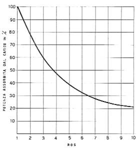 - ROS (Rapporto Onde Stazionarie) o VSWR (Voltage Wave Standing Ratio), nel caso in cui l’impedenza caratteristica del cavo è esattamente uguale a quella del trasmettitore e dell’antenna tutta la potenza disponibile viene irradiata, in questo caso il ROS è uguale a 1; più l’impedenza caratteristica si scosta da quella del trasmettitore e dell’antenna più il ROS cresce e diminuisce la potenza assorbita dal carico Fig.2;