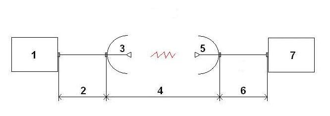 4 - spazio libero, il mezzo attraverso il quale avviene la propagazione delle onde elettromagnetiche che presenta una certa attenuazione dipendente dalla frequenza e dalla distanza ricavabile in base alla seguente formula: Attenuazione in dB = 96,6 + 20logFrequenza in GHz + 20logDistanza in km;