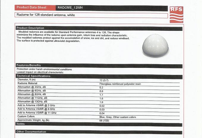 guida d'onda EW127A guida d'onda ellittica, a 12,7 GHz ha un'attenuazione di 11,634 dB per cento metri e una potenza media di transito di 1262 W pari ad una tensione a radio frequenza su 50 ohm di circa 260 V;