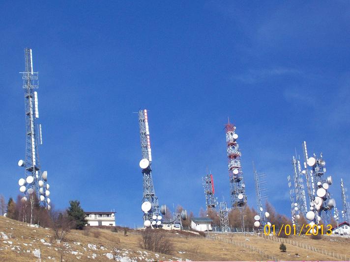 - da una sola antenna elementare come ad esempio avviene per le stazioni radio base per telefonia mobile dove ogni cella è un sistema radiante composto da una singola antenna elementare che irradia in una determinata direzione. In figura 4 sono visibili alcuni sistemi radianti a cortina sia televisivi di tipo a pannello di colore bianco, grigio e rosso che radiofonici (elementi direttivi) relativi al sito trasmittente di Castaldia nel comune di Aviano (PN).