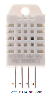 Il pinout è semplice: quattro pin, uno non è usato (NC), due sono dedicati alle alimentazioni (VCC e GND) e sull'ultimo si fanno transitare i dati da e per il sensore (DATA).