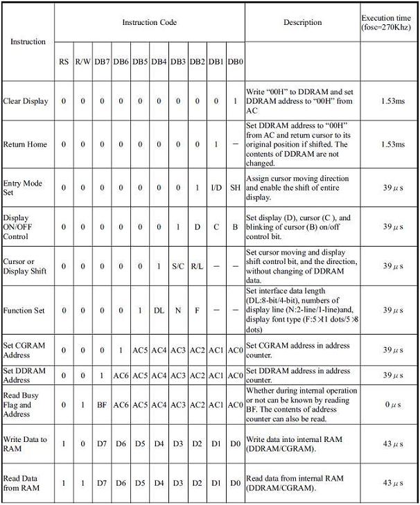 // 4-bit mode, 2 lines display, font 5x8 pixels