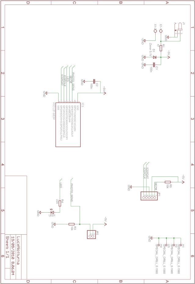 Una nota la merita il dimensionamento delle resistenze R3 ed R4. La scelta di R4 è in funzione del tipo di LED (semplice od ad alta luminosità) che si decide di adottare. La resistenza R3, invece, determina il partitore con la fotoresistenza. L'esperienza sul campo mi ha portato a scegliere il valore 10k, ma questo è dipeso dal tipo di sensore adottato.