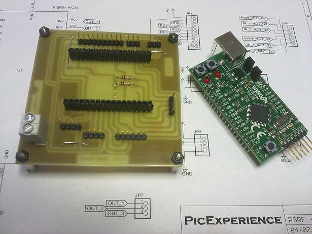 La scheda madre è in tutti gli effetti il PIERIN PIC18. Per poterla impiegare si è reso necessario dover sviluppare un carrier, ossia una scheda di supporto in grado di renedere usufruibili i 40 pin del PIERIN, con pin strip. Per come è stato pensato il robot, la scheda si interfaccia con le periferiche di I/O rendendo disponibili: