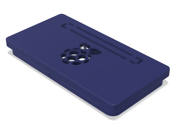 Sul coperchio ho disegnato il simbolo di Raspberry (il lampone), garantendo così una fessura per il passaggio dell'aria e permettere il raffreddamento della Pi Zero W. Ho realizzato anche la traccia di prefratturazione: va rotta se si vuole accedere al connettore 40 poli sottostante.