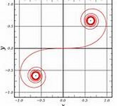 Questo grafico dimostra, con un po' di debita riflessione che le due funzioni C(u)eS(u) hanno un entrambe andamento oscillante smorzato, che si attesta asintoticamente al valore di 0.5. La S(u) parte leggermente in ritardo, rispetto alla C(u), guardando la direzione delle ascisse, anche se entrambe passano per l'origine. Le loro oscillazioni s'incrociano con una certa periodicita', finche' non tendono a 0.5.