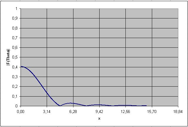 Come si vede, gli zeri sono ad ascisse x, multiple di π e gli angoli θ per cui il diagramma e' nullo sono dati dalla relazione: