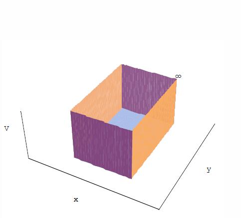 Possiamo vare un esempio con una buca di potenziale a due dimensioni, che vale: