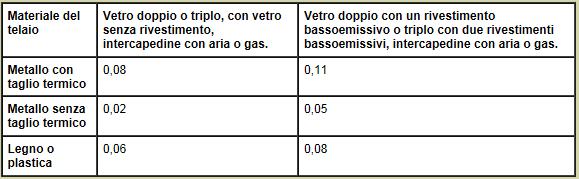 - UG la trasmittanza termica dell'elemento vetrato (che puo' essere composto da piu' vetri ed intercapedini)