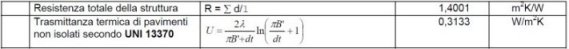 Per la determinazione della trasmittanza termica del pavimento appoggiato sul terreno U0 (in questo caso costituito da sabbia e ghiaia), si utilizzano i prospetii della UNI 13370 , che tiene conto della conduttività termica del pavimento.