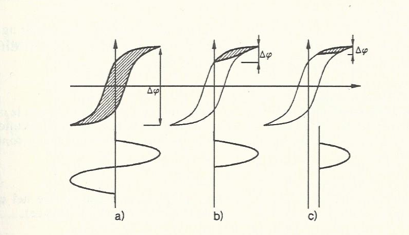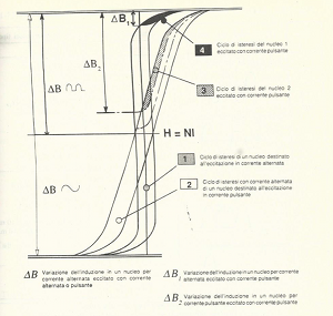 La soluzione e' quella frequente di costruire nuclei magnetici che presentino caratteristiche meno ripide, in modo da essere meno sensibili alla componente continua, oppure si inserisce un condensatore in serie al circuito, in modo da bloccare la componente continua. In Fig. 5 e' riportato il comportamento di due nuclei magnetici con caratteristiche diverse, di fronte ai vari casi di sollecitazione di corrente.