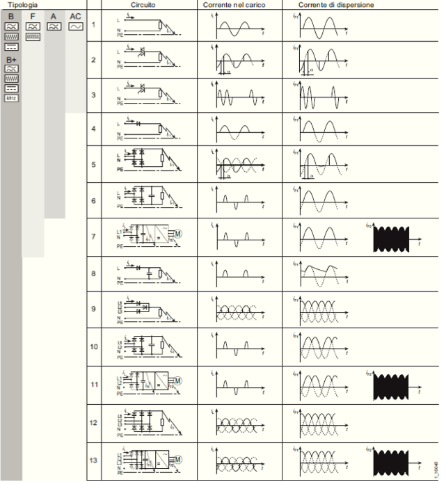 Gli interruttori differenziali di Tipo AC sono adatti solo per il rilevamento di correnti di guasto alternate di forma sinusoidale