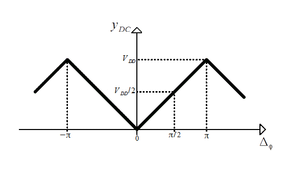 ovvero yDC = KPDΔΦ con KPD chiamata “sensibilità del rivelatore di fase”, la cui unità di misura è [V / rad]. Dunque, il KPD è fissato una volta fissata l'alimentazione. La caratteristica d'uscita è la seguente