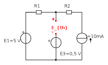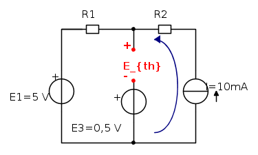 In questo caso quindi, partendo dal negativo di ETh ... scendendo attraverso E3 ... e risalendo a sinistra per E1 ... ed infine passando per R1 avrò la seguente somma algebrica di "dislivelli elettrici"