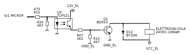 devo pilotare delle elettrovalvole a 24Vdc con un microprocessore, ho realizzato il circuito e funziona, l'unico problema è che l'apertura e chiusura delle elettrovalvole mi porta uno sfarfallio fastidioso, sul display nonostante l'optoisolamento.