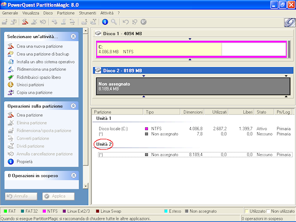 Nota: questa operazione ha effetto immediato, tutte le altre che andremo a vedere saranno invece accodate ed eseguite solo quando cliccheremo su Apply (Applica).