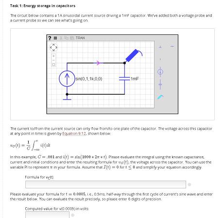 Ogni settimana bisognava consegnare anche dei compiti per casa e un laboratorio, il tutto gestito attraverso caselle di inserimento nelle pagine web per i risultati corretti in tempo reale e da pagine interattive tra cui un simulatore di circuiti molto semplice da usare.