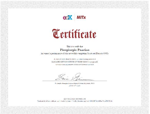 Rientro per vedermi il quarto e scopro che esiste un progetto nuovo... chiamato 6.002x un progetto sperimentale del MIT che prevede l'insegnamento interattivo online di "Circuits and electronics" che ripercorre i concetti spiegati nell'omonimo corso 6.002 del MiT.