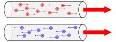 La corrente elettrica può essere definita come il movimento ordinato di cariche elettriche, dove per convenzione si stabilisce la direzione del movimento delle cariche elettriche positive come verso generale della corrente elettrica: