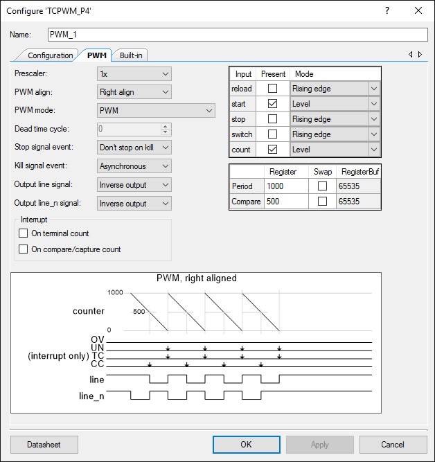 I valori di "period" e "compare" sono ininfluenti perchè verranno modificati dal firmware.