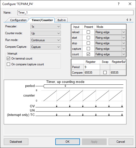 Timer_1_WriteCounter(0); // necessario resettare a 0 il contatore: vedi nota