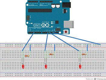 Gli attrezzi e componenti per un ARDUINER doc che non dovranno mai mancare, obbligatoriamente saranno, 'breadboard , cavi,resistenze e LED.' Proprio per questo, negli esperimenti primari e più semplici non si fa altro che giocare proprio con questi.