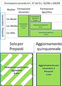 In particolare l'Articolo 37 del Testo Unico è titolato "Formazione dei lavoratori e dei loro rappresentanti" ed è piuttosto complesso: in due pagine ci sono 14 commi che riguardano la formazione di varie figure all'interno dell'azienda (lavoratori, preposti, dirigenti, rappresentanti per la sicurezza ecc.). Inoltre l'articolo rimanda (comma 2) proprio ad un accordo in sede di Conferenza permanente per i rapporti ... insomma alla Conferenza Stato-Regioni, per la definizione della durata, dei contenuti e delle modalità della formazione, in particolare per i lavoratori.