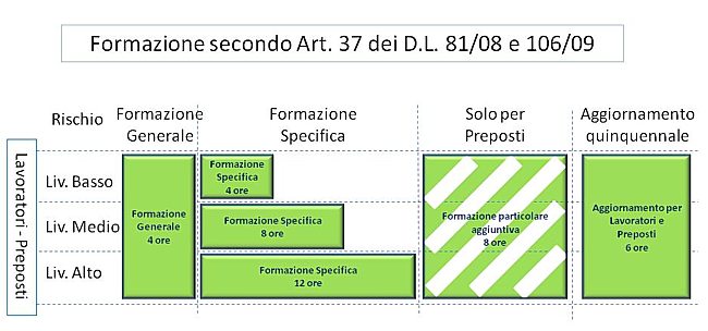 In particolare l'Articolo 37 del Testo Unico è titolato "Formazione dei lavoratori e dei loro rappresentanti" ed è piuttosto complesso: in due pagine ci sono 14 commi che riguardano la formazione di varie figure all'interno dell'azienda (lavoratori, preposti, dirigenti, rappresentanti per la sicurezza ecc.). Inoltre l'articolo rimanda (comma 2) proprio ad un accordo in sede di Conferenza permanente per i rapporti ... insomma alla Conferenza Stato-Regioni, per la definizione della durata, dei contenuti e delle modalità della formazione, in particolare per i lavoratori.