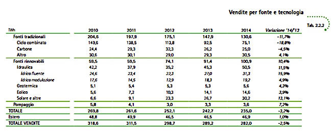 La percentuale a consuntivo del fotovoltaico per l’anno 2014 è stata dell'11%. In genere il fotovoltaico produce nelle fasce orarie in cui è più richiesto dall'industria, quindi in futuro esso potrebbe avere un impatto distributivo ancor più incisivo.