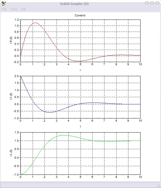 Con l'output grafico per le correnti iR(t), iC(t) e iL(t) di fig.6.