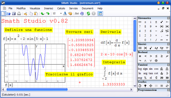 SMath Studio è un software libero di calcolo simbolico e numerico che, anche se ancora in fase di sviluppo, cerca di essere l'alternativa a MathCad.