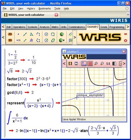 Su segnalazione di Isidoro, WIRIS, della Maths for More, una interessante piattaforma di calcolo online sponsorizzata in Italia dalla "Agenzia Nazionale per lo Sviluppo dell’Autonomia Scolastica".
