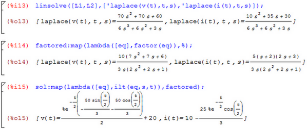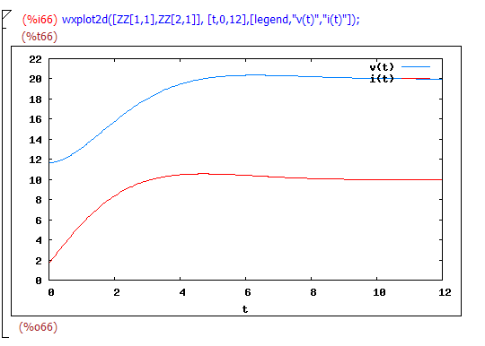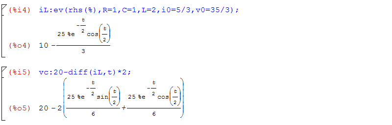 d) valutiamo per i particolari valori numerici (%i4) ottenendo i(t)