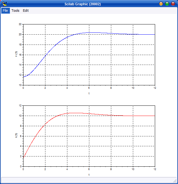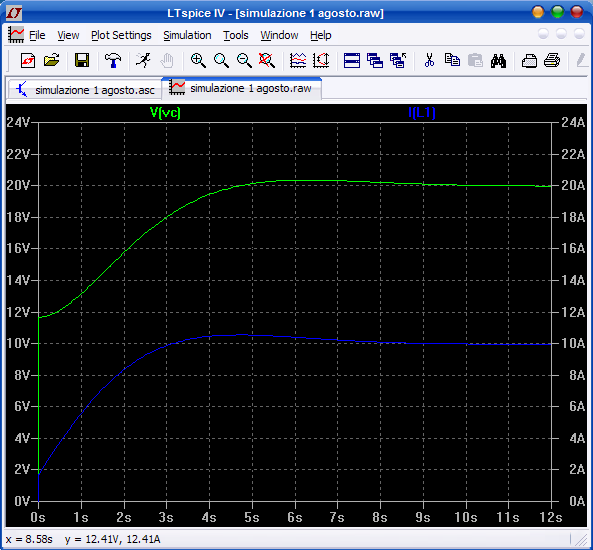 dal grafico possiamo verificare i valori iniziali e a regime per