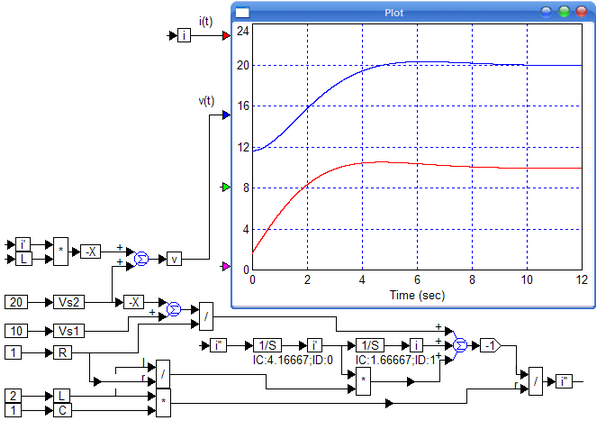 Usando la stessa metodologia utilizzata per VisSim, inseriamo lo schema a blocchi in Scicos,