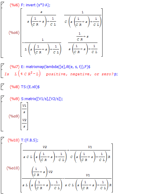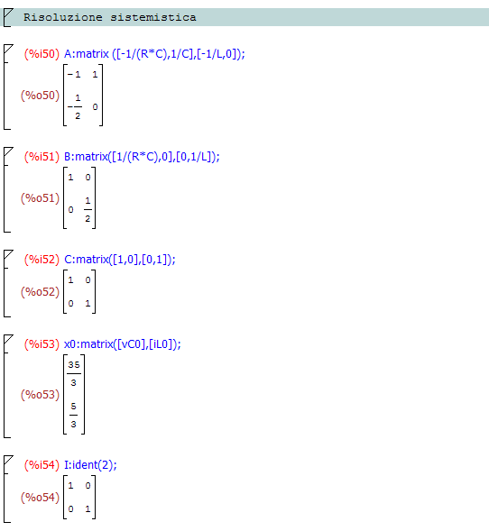 NB per semplificare l'output simbolico alcuni passaggi di Maxima non sono stati esplicitati ! (chiudendo la riga con "$")