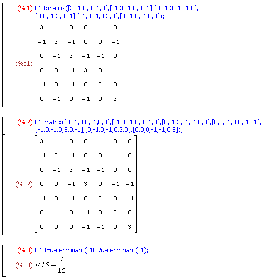 con Maxima possiamo eseguire il calcolo e verificare il risultato per i due vertici adiacenti 1 e 8