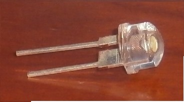 La lampadina (nella foto dopo la modifica LED) in origine era alimentata da due ministilo (AAA) e portava una lampadina a incandescenza da 3V e pochi W (non ricordo esattamente quanti). Effettuai la modifica perchè le pile duravano poco e la luce era molto fioca. In quegli anni (almeno 5-6 anni fa) avevo acquistato sui ebay diversi LED discreti in package plastico, diametri 5-8-10 mm e angoli di emissione tra 40 e 140°. In questo caso decisi di usare il seguente LED bianco:
