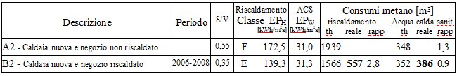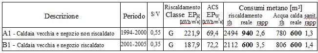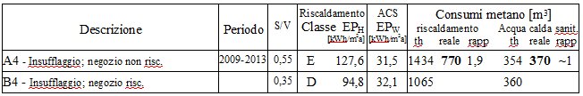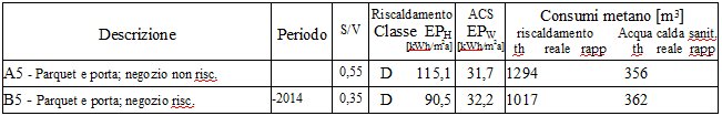 Ecco i risultati ottenuti dalla certificazione energetica per le due situazioni possibili: