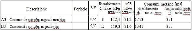 - certificazione B: negozio sottostante riscaldato; S/V=0,33
