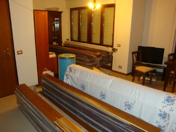 Nella prima foto la situazione della sala all'arrivo del materiale. Sembra facile sistemare qualche metro cubo di listoni, ma quando li si mette in ordine per dimensione.... in pratica non resta più spazio per muoversi!